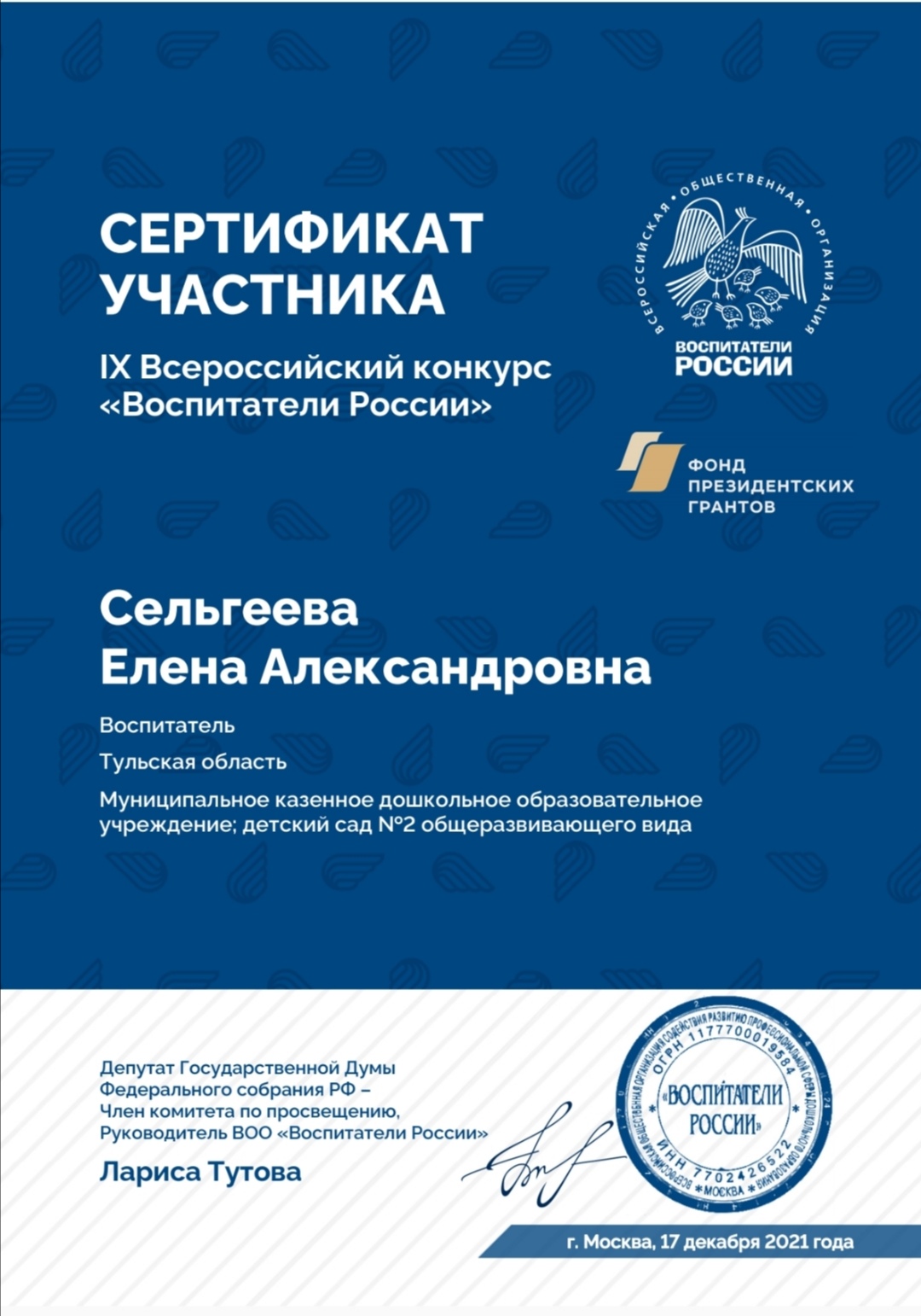 Участница регионального конкурса «Призвание – учить!» в 2021 году