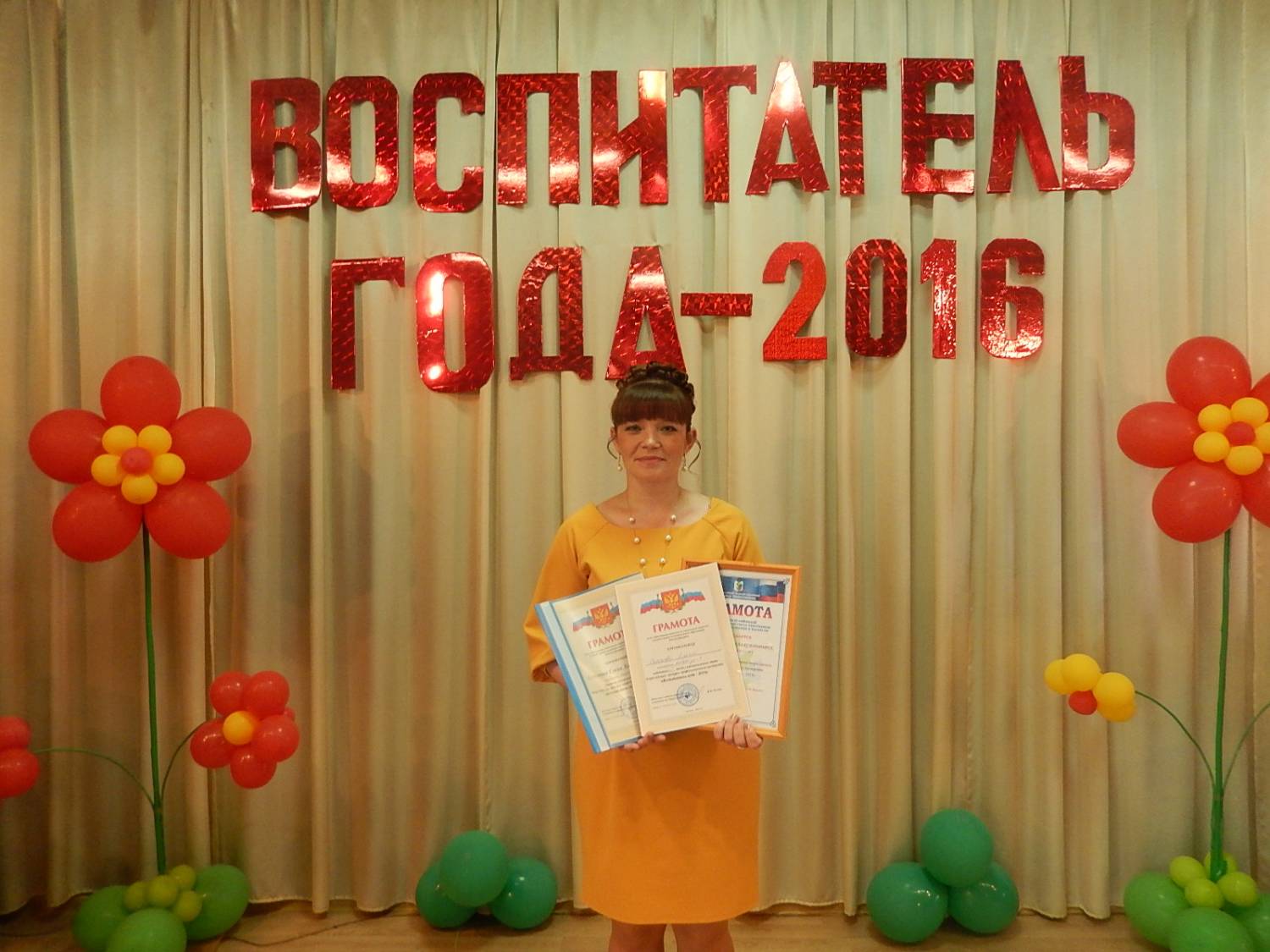 Лауреат конкурса, награждена грамотой министерства образования Тульской области, памятными сувенирами и денежными премиями от Тульской областной организации профсоюза работников народного образования и науки Российской Федерации.