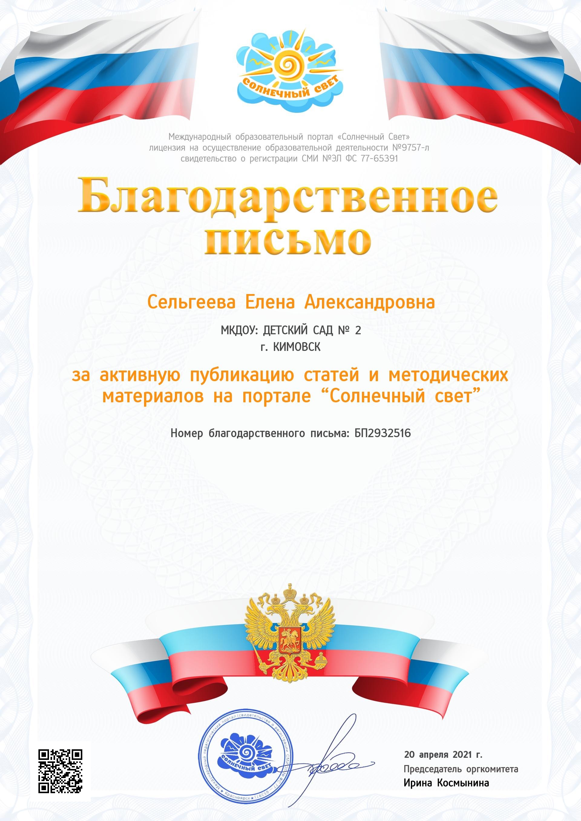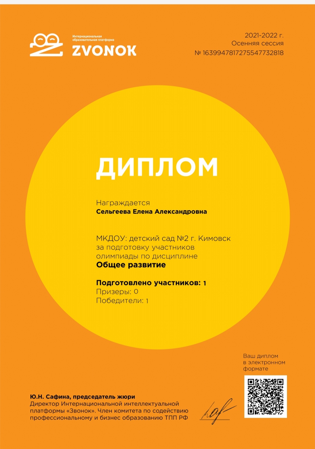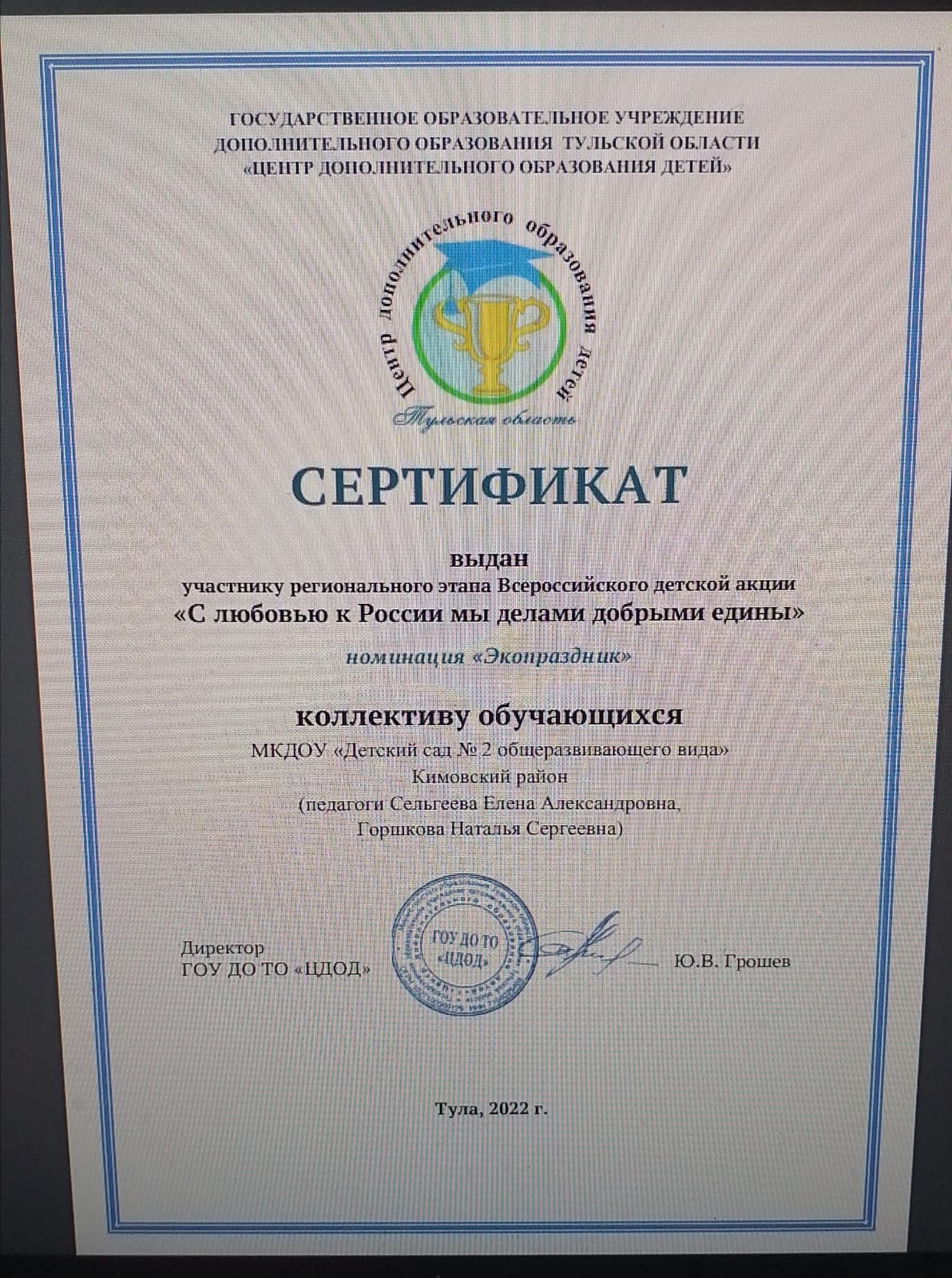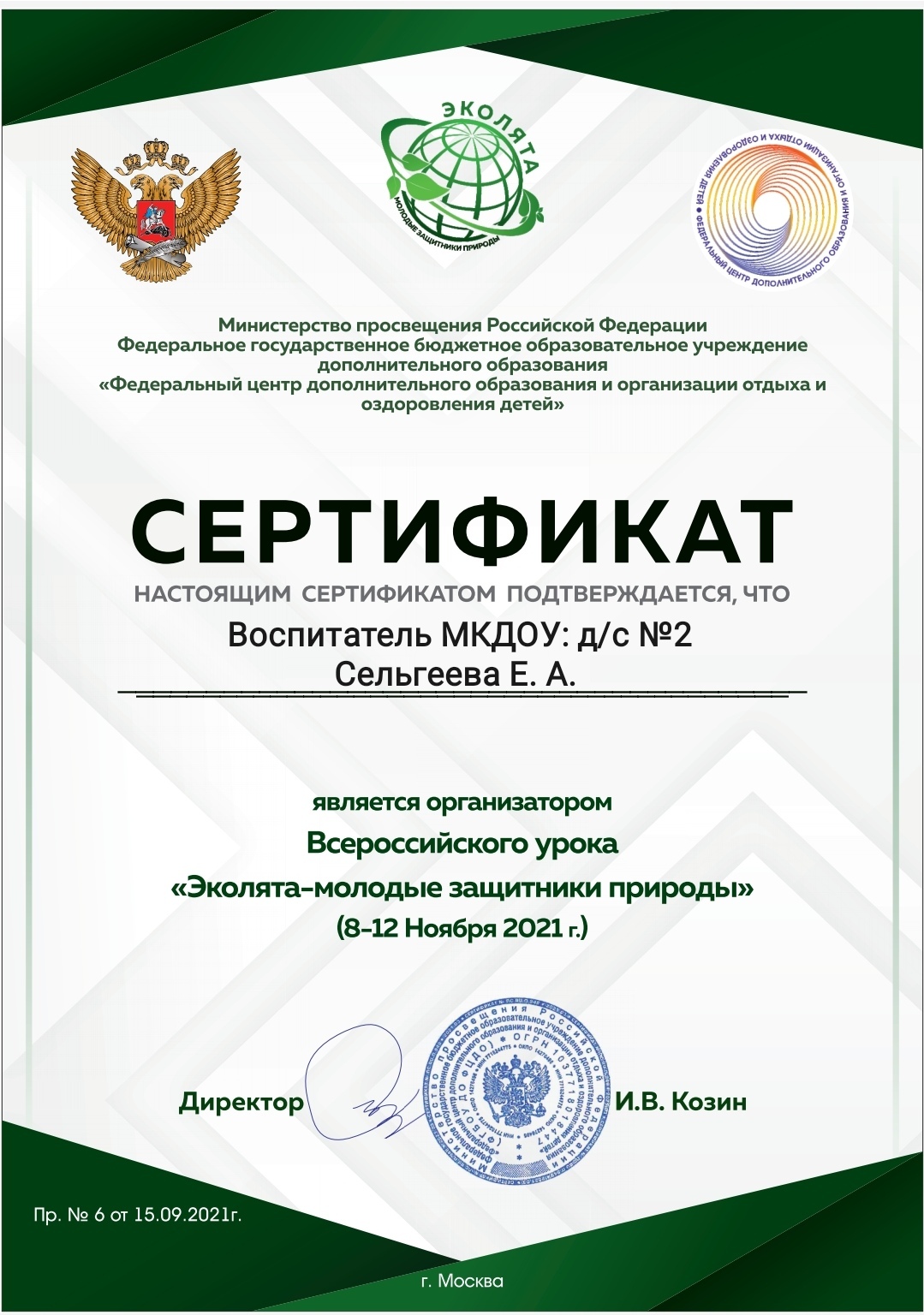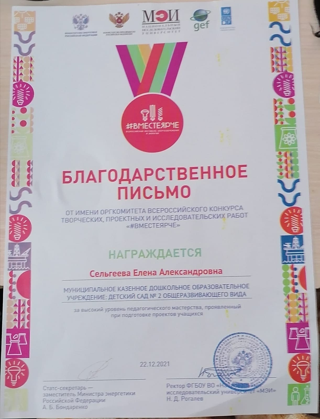 в номинации "Эколята-дошколята" педагоги Сельгеева Елена Александровна и Могдалева Виктория Тимуровна награждены дипломами призера (2 место)
