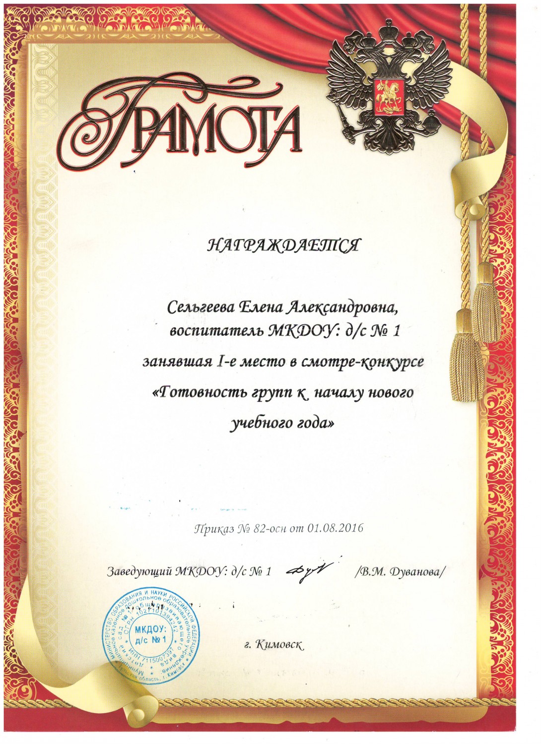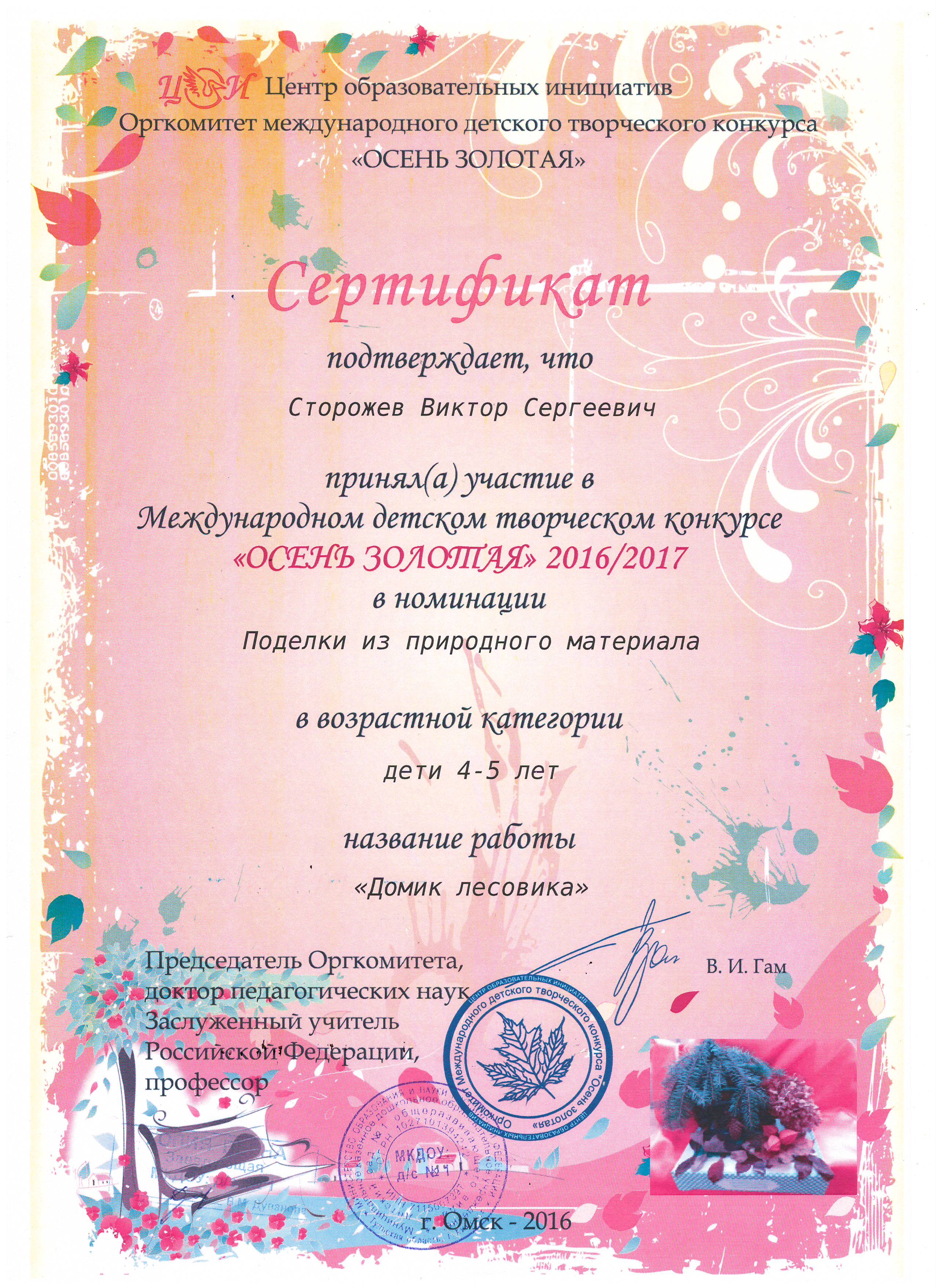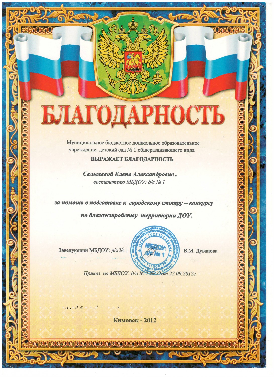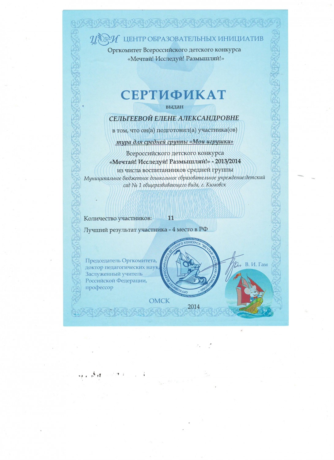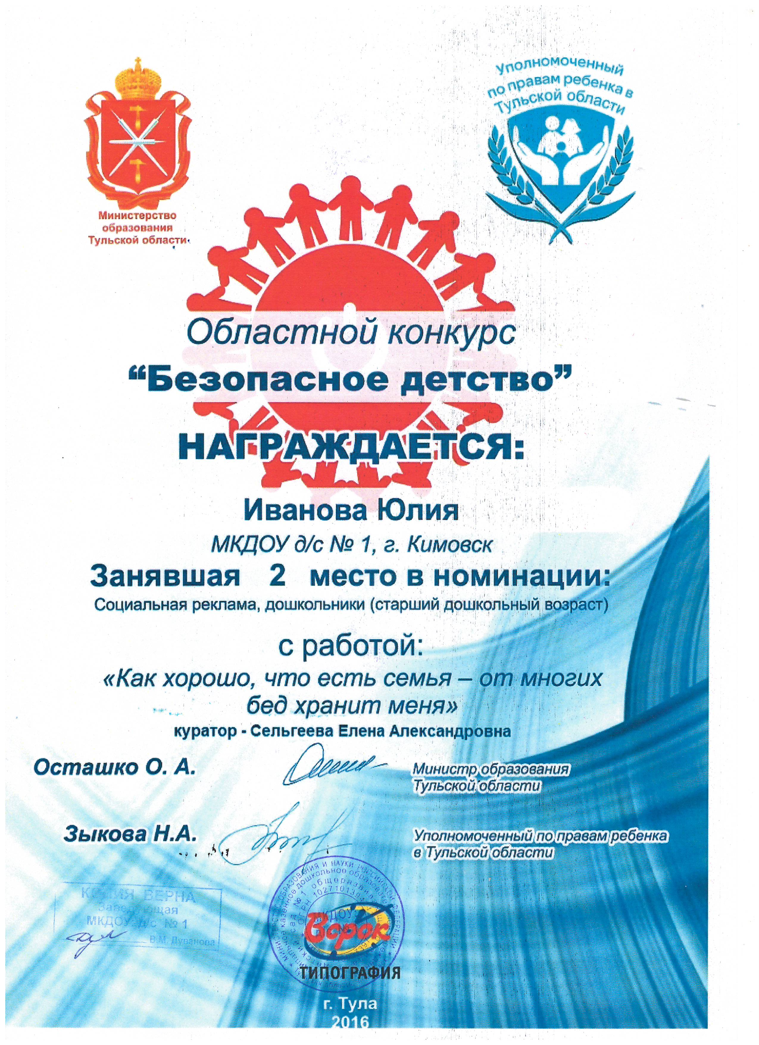 в номинации "Эколята-дошколята" педагоги Сельгеева Елена Александровна и Могдалева Виктория Тимуровна награждены дипломами призера (2 место)