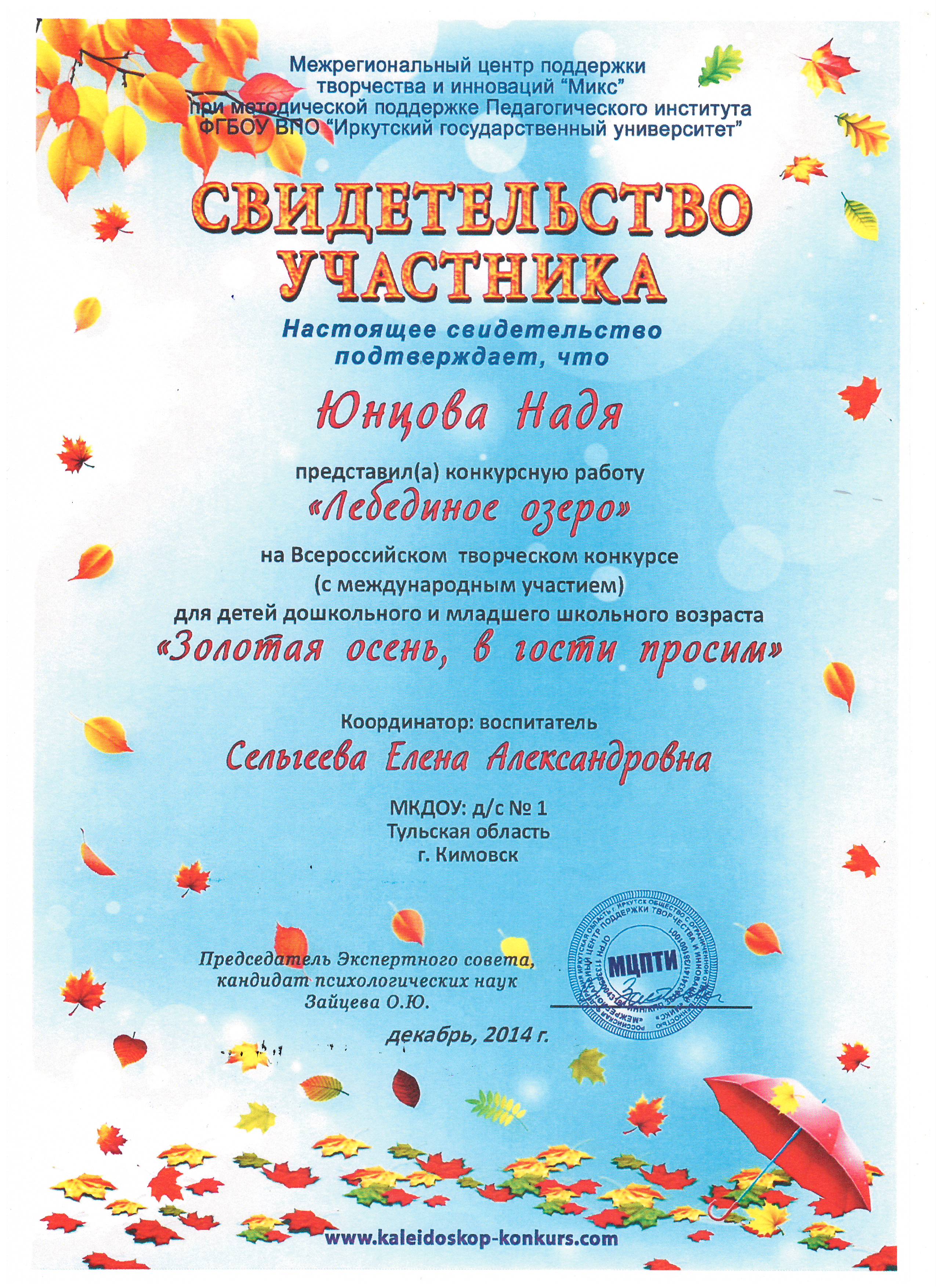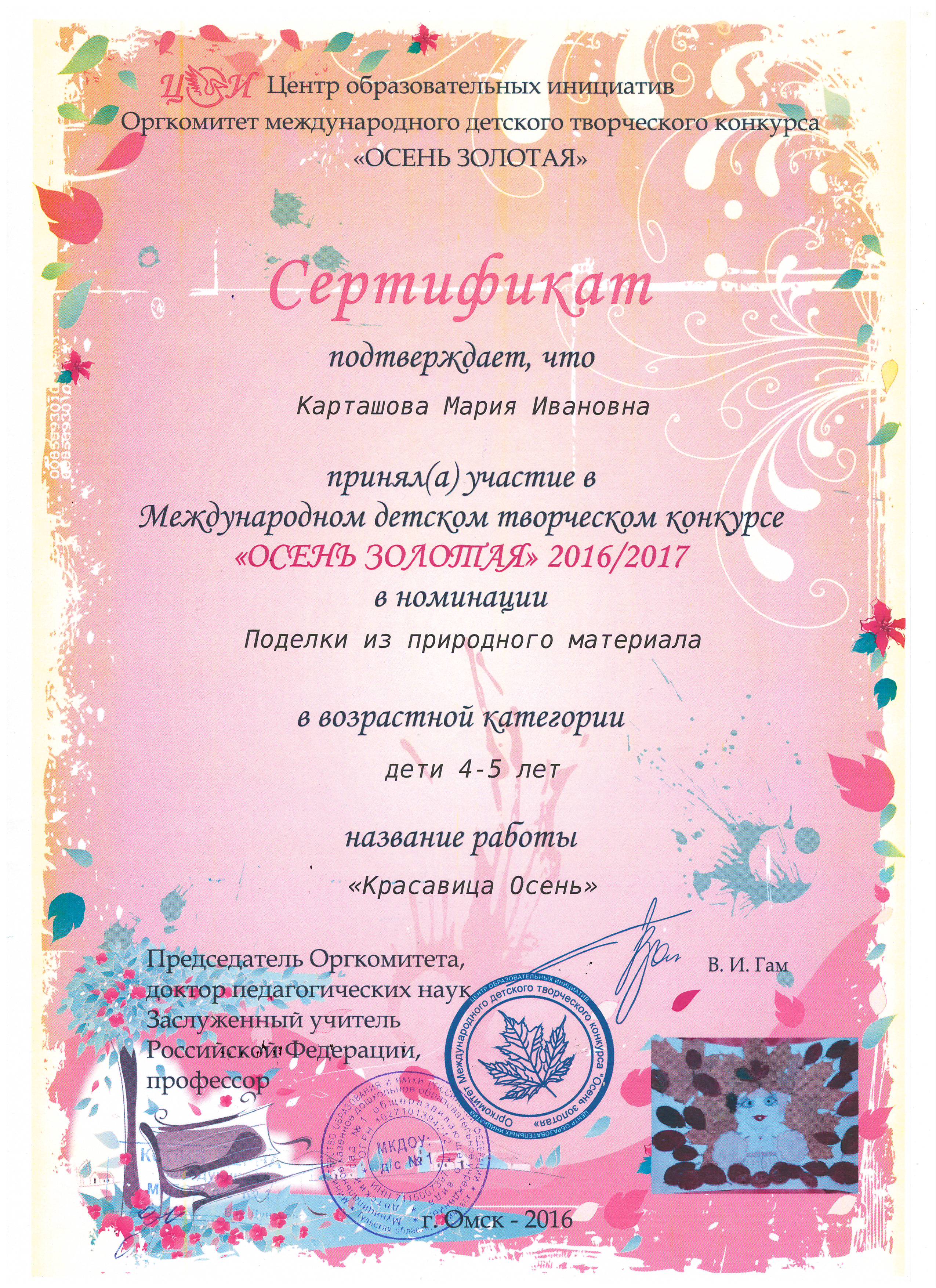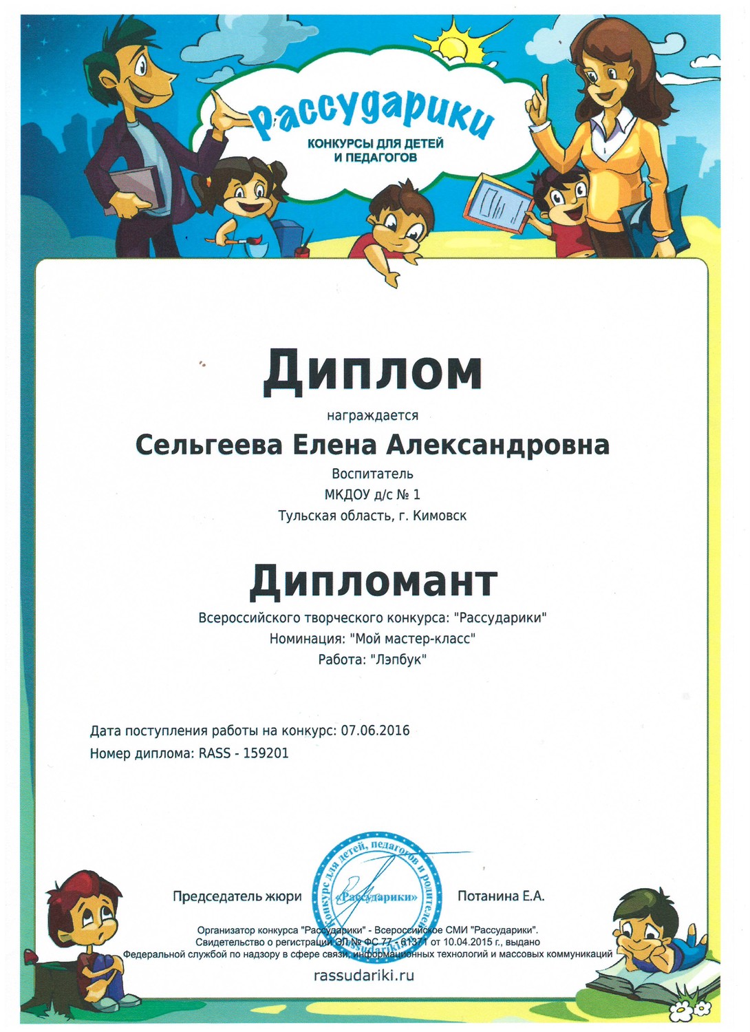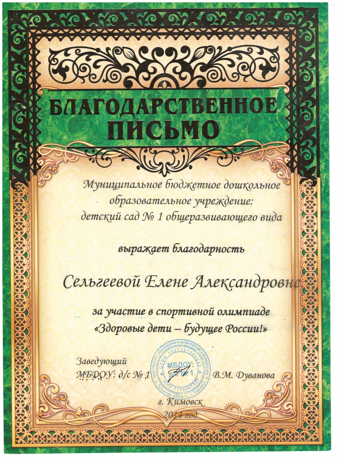 в номинации "Эколята-дошколята" педагоги Сельгеева Елена Александровна и Могдалева Виктория Тимуровна награждены дипломами призера (2 место)