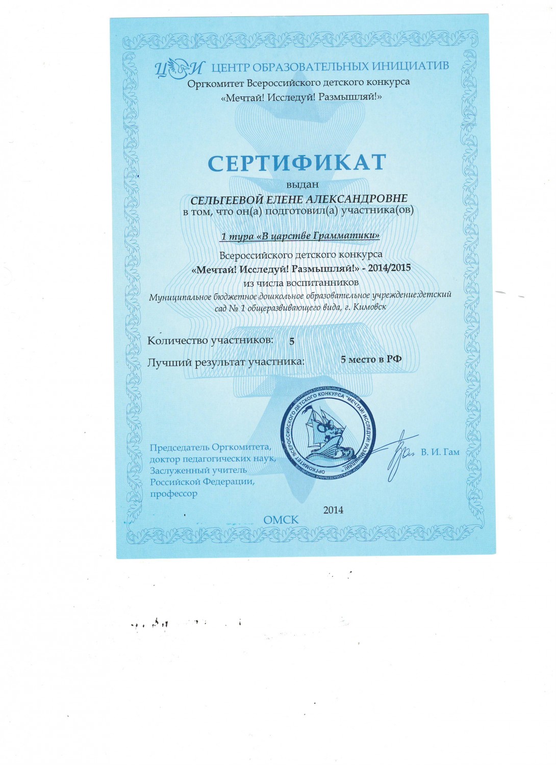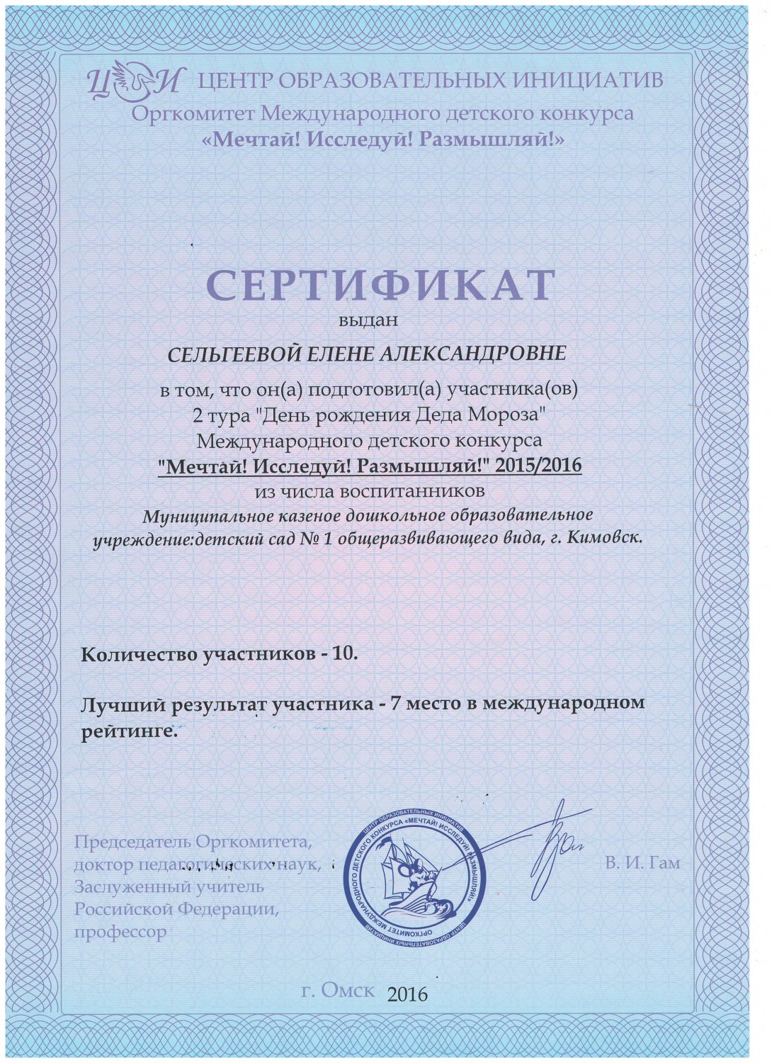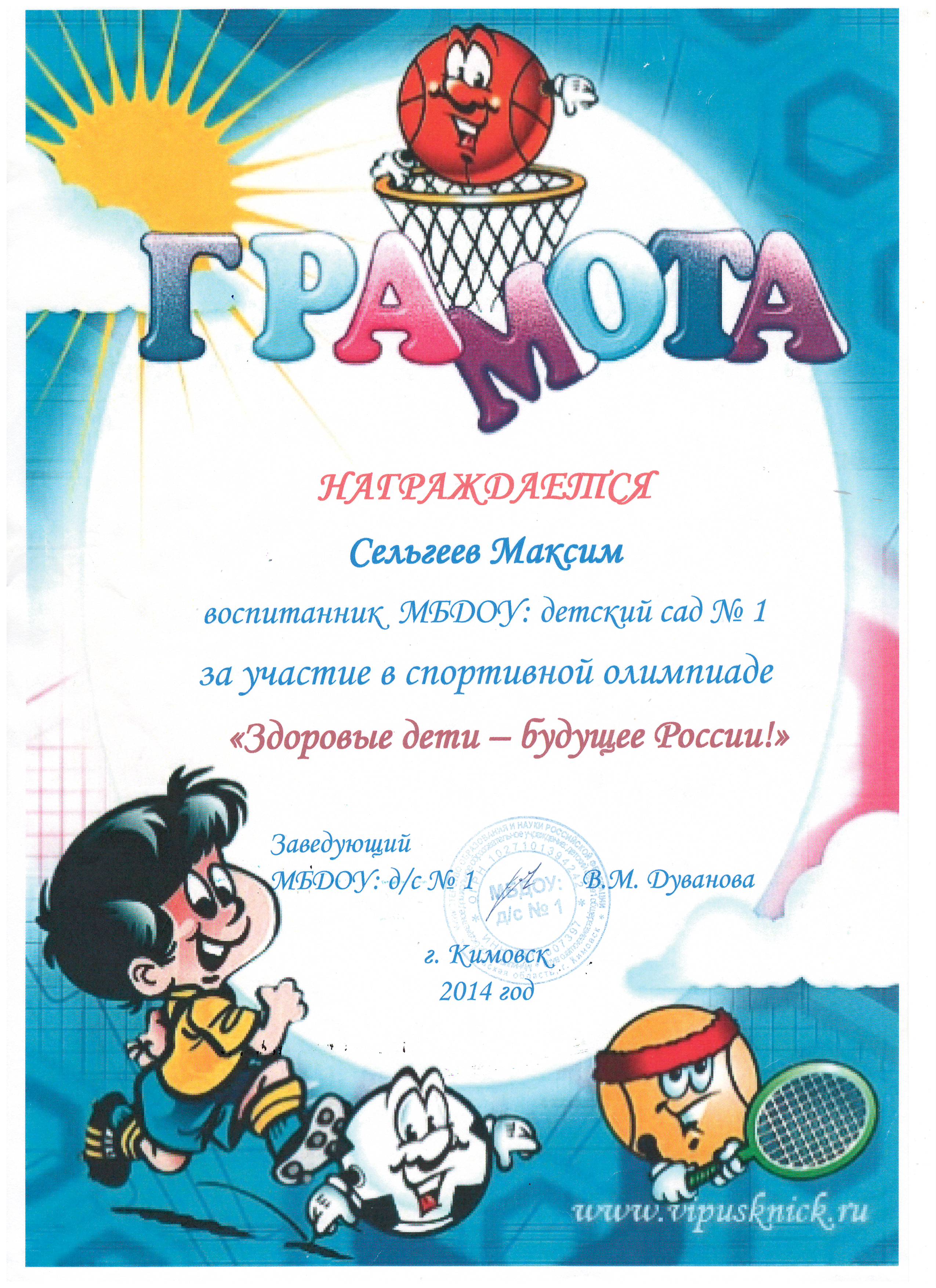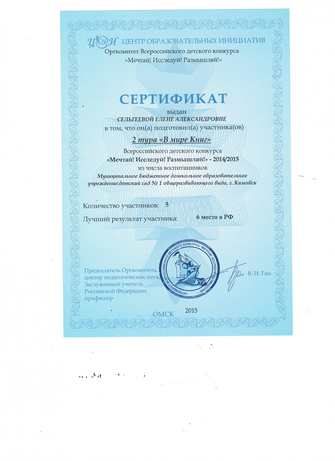 в номинации "Эколята-дошколята" педагоги Сельгеева Елена Александровна и Могдалева Виктория Тимуровна награждены дипломами призера (2 место)