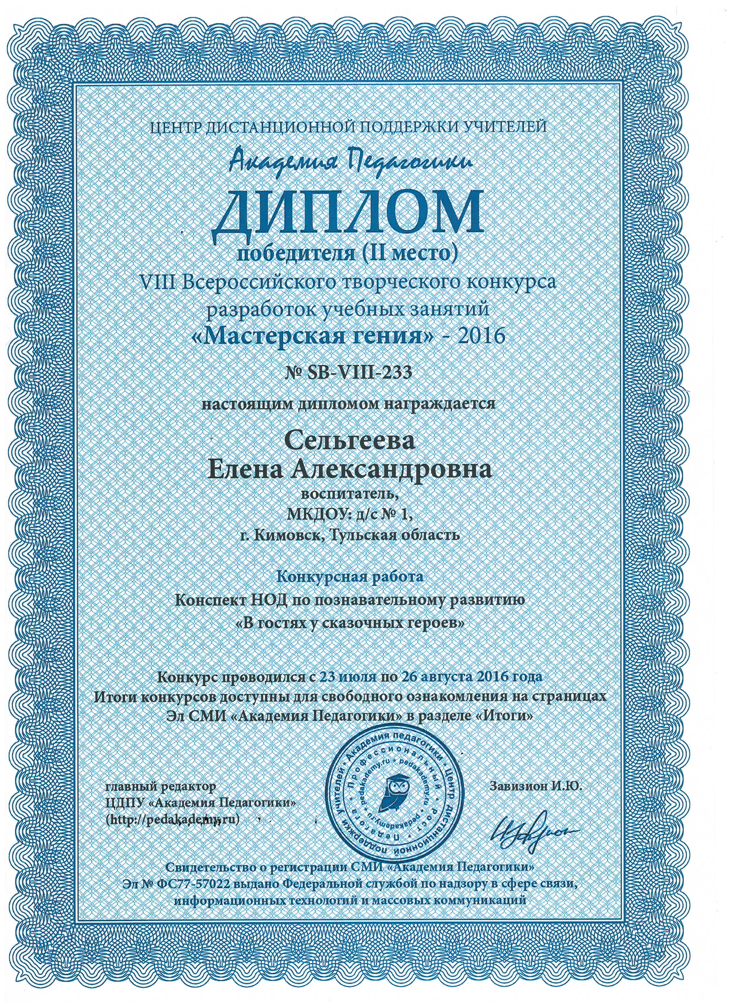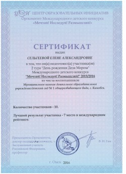 II место – Сельгеева Елена Александровна