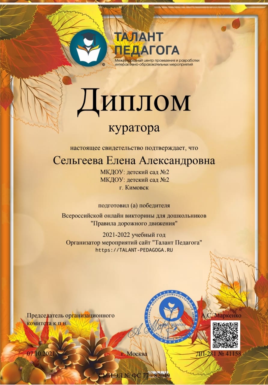 Публикаций о результативном практическом опыте во Всероссийское СМИ "Время Знаний https://edu-time.ru/pub/131799 , свидетельство и справка о публикации подтверждающие документы