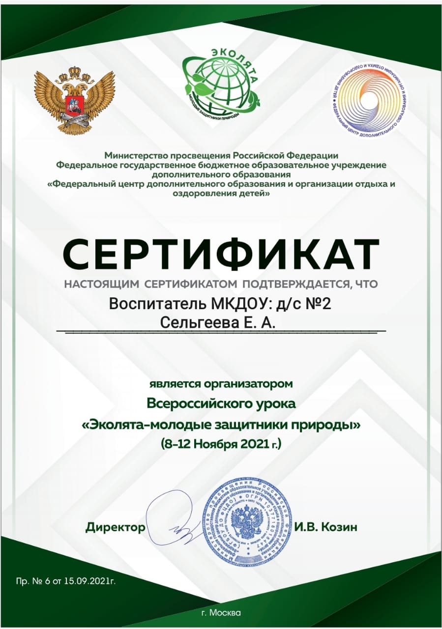 Организатор Всероссийского урока "Эколята - молодые защитники природы"