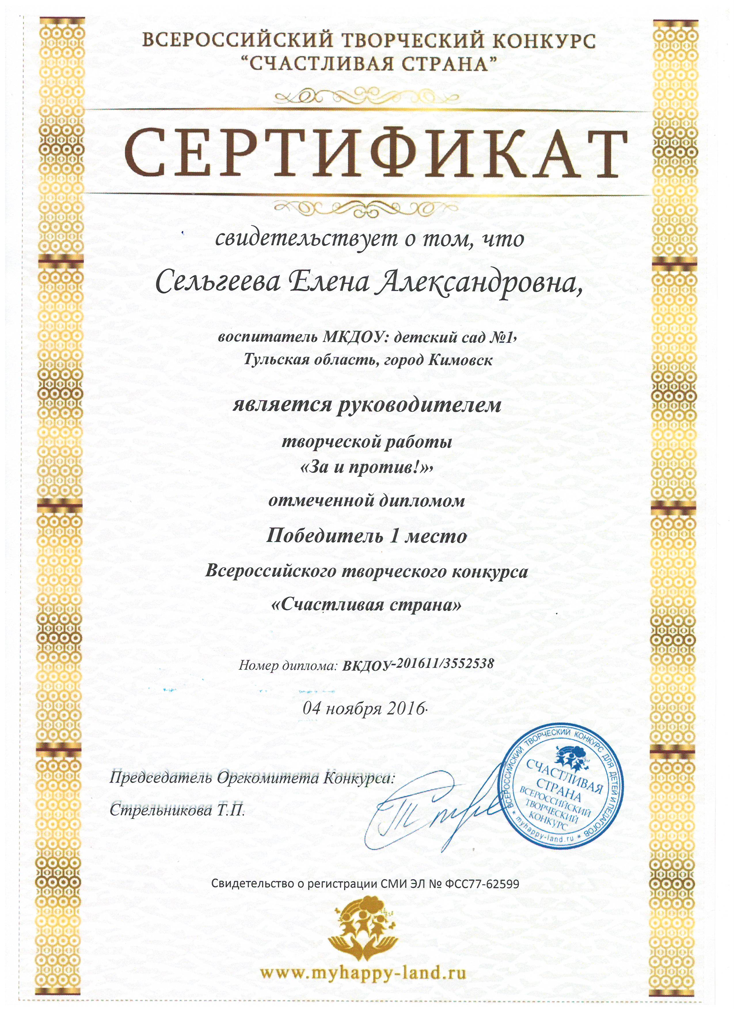 Участие во Всероссийском творческом конкурсе "Счастливая страна"