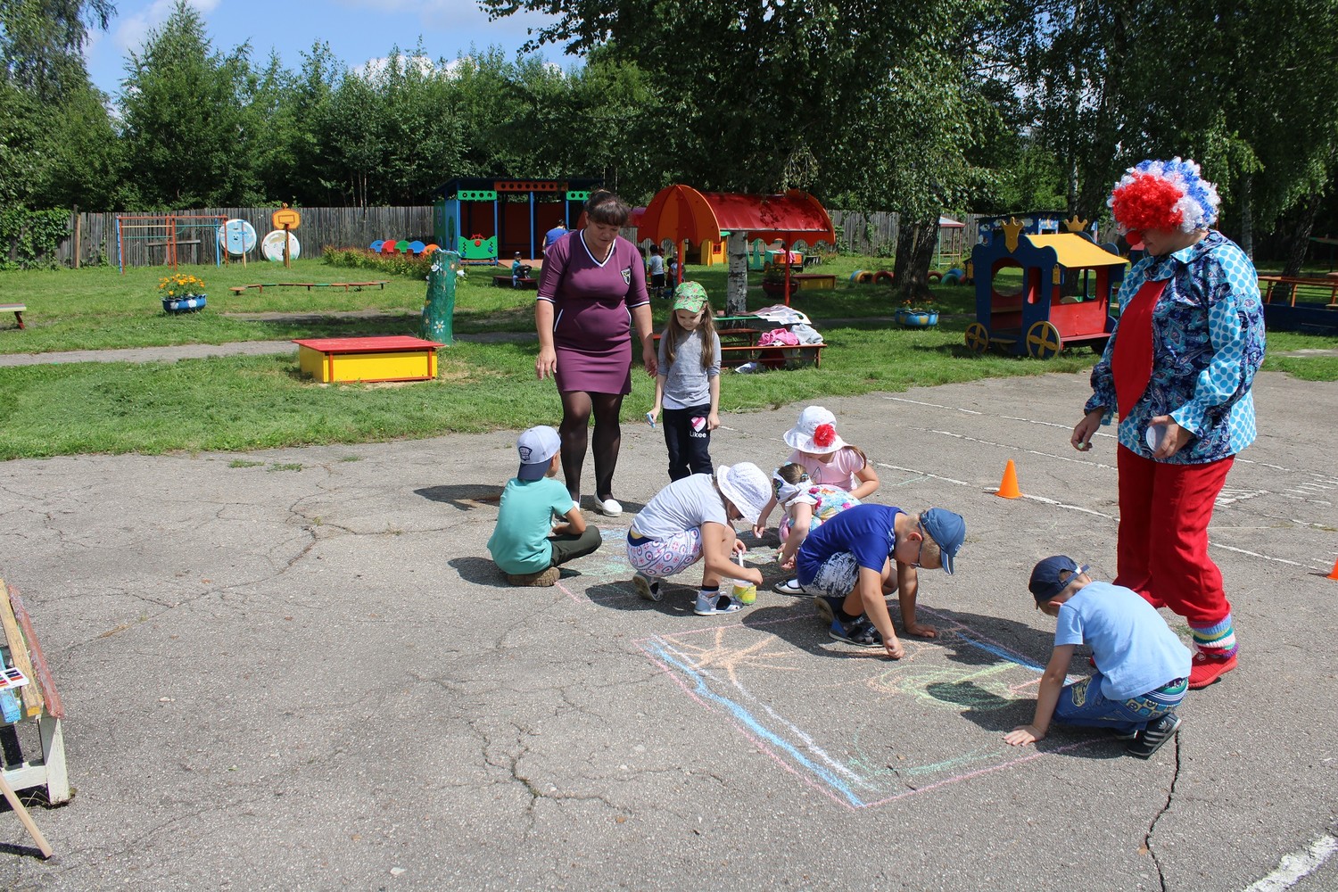 Лето! Светит солнышко, на улице тепло. Сложно усидеть в душных группах детского сада. Так и хочется поскорей на улицу, там столько всего интересного! Воспитанники старшей группы приняли участие в развлечении, посвящённом Международному дню рисунка. В гости к детям приходил веселый клоун, который никак не мог вспомнить цвета радуги, дети с большим удовольствием помогли ему. Ребята рисовали лето на мольберте красками. А с каким удовольствием юные художники рисовали на асфальте мелками! Рисунки получились сказочными, яркими, а главное добрыми. Праздник подарил множество положительных эмоций детям и взрослым, а рисунки на асфальте продолжают всех радовать!